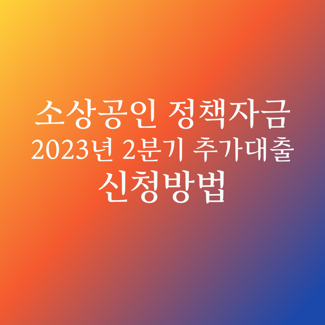 소상공인 정책자금 2023년 2분기 추가접수 진행합니다. 7천만 원부터 최대 1억 원까지이며, 날짜는 2023.6.1~ 2023.6.30일까지 선착순으로 진행 중이니 빠른 신청 바랍니다.
